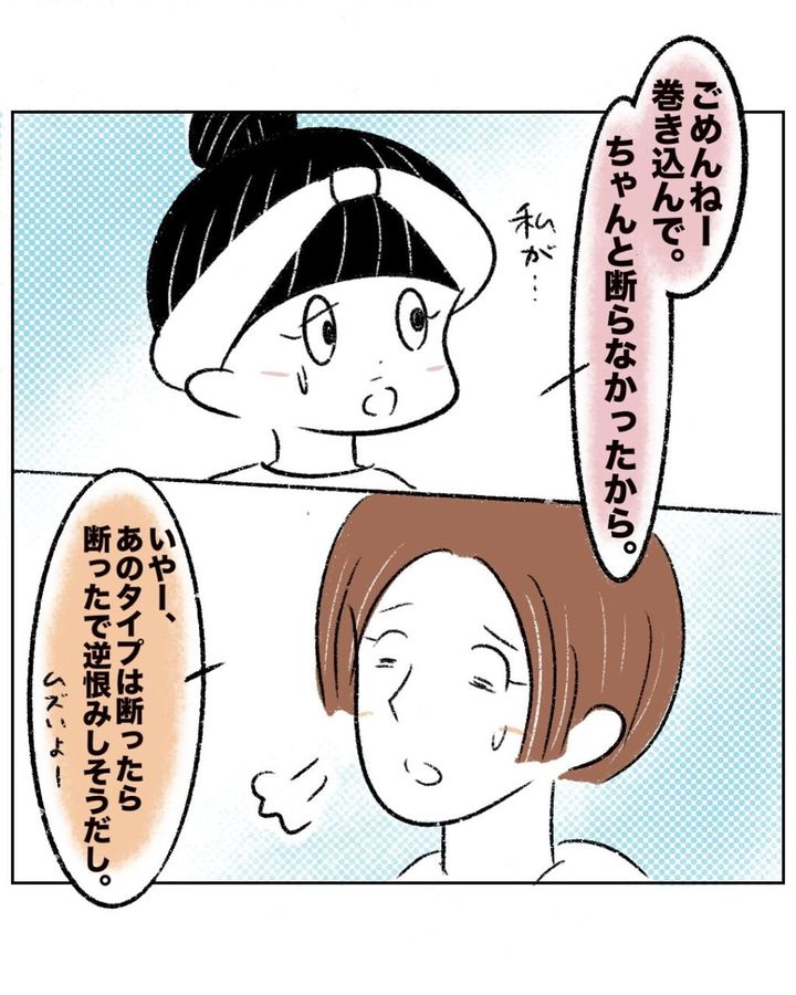 「ごめんねー。巻き込んで。私がちゃんと断らなかったから」とまるさんが申し訳なさそうに言うと、マキちゃんママは「いやー、あのタイプは断ったら断ったで逆恨みしそうだし。ムズいよー」と同情してくれました。