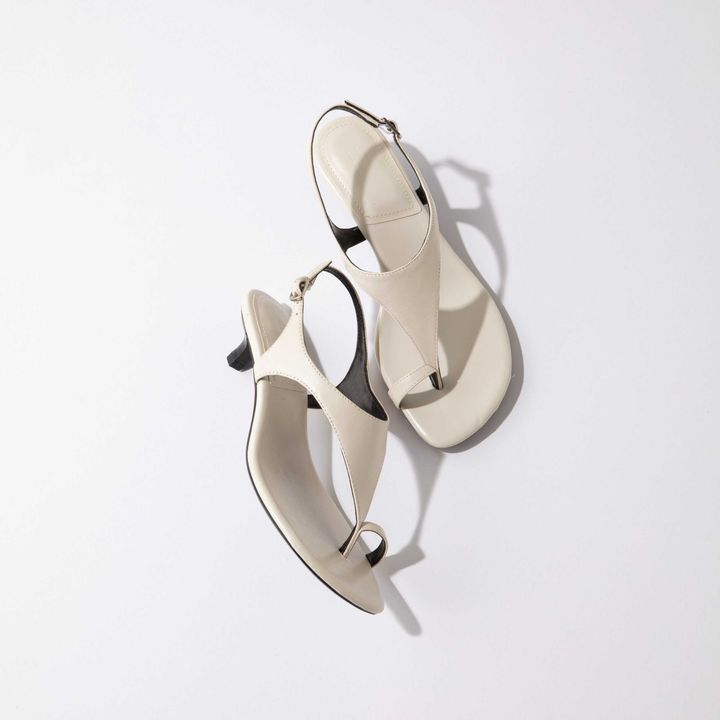 コーデに爽やかなヌケ感を作ってくれる白い靴は夏のコーデに欠かせない。キトゥンヒールは歩きやすく洒落感もあってオススメです。こちらのトングミュールは作りがしっかりしていてプチプラに見えません!