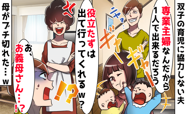 3. 「専業主婦は疲れたとか言うな」双子の子育てに疲弊する妻に暴言を吐く夫…しかし、母の登場で形勢逆転!?