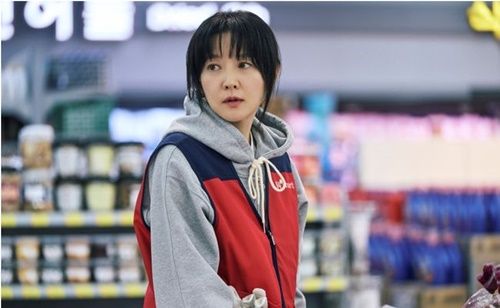 続くカットでは、スーパーの制服を着てレジに立つウンスの姿も捉えられている。淡々と業務をこなす表情からは、平凡な労働の中で厳しい現実に耐え続ける“生活者”ウンスの芯の強さがにじみ出ている。