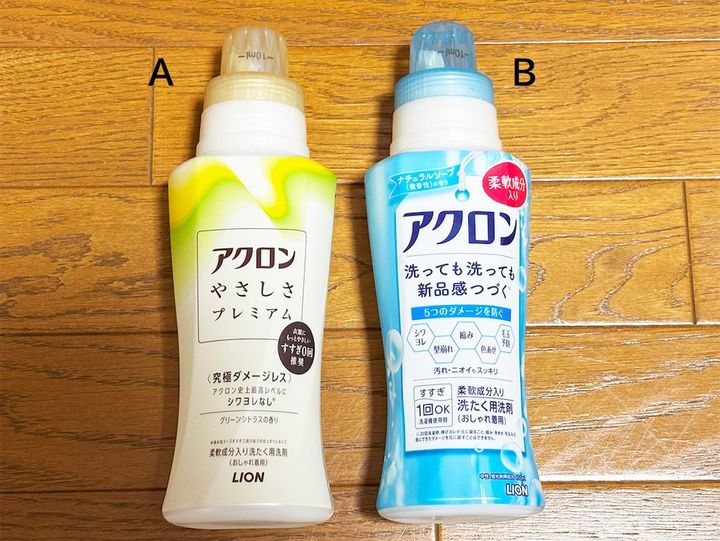今回「アクロンやさしさプレミアム」と「アクロン(柔軟成分入り)」でそれぞれ夫のシャツを洗い、比較してみた結果、仕上がり具合(シワ、ヨレの軽減)では「アクロンやさしさプレミアム」に軍配が上がりましたが、その差はそこまで大きくない印象でした。