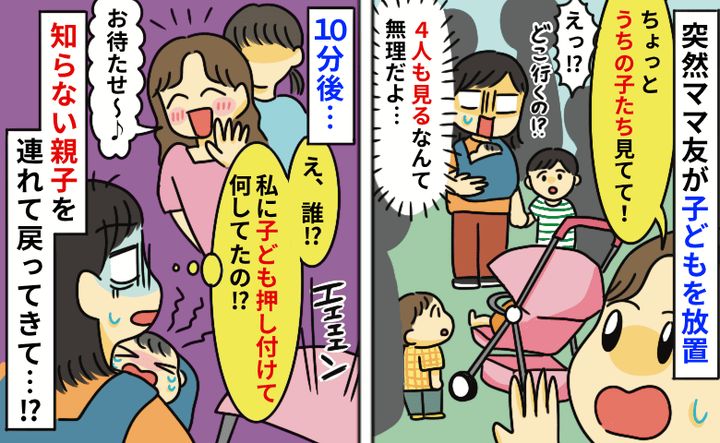 ママ友が子どもを放置「うちの子よろしく!」え、4人も面倒見るの無理だよ…10分後、耳を疑う言葉が