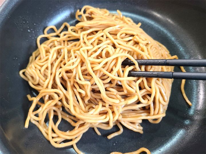 具はなく、麺のみというシンプルさ。味もシンプルでどこかなつかしい味のするソース焼きそばなのですが、ふわっとこしょうの風味が感じられておいしい♪ なんと言ってもそのままかぶりつけるのがいいですよね。手も汚れず、準備するものは一切なし!コンビニで売っていたら、部活帰りの高校生なんかに大人気になりそう♪食べやすいので、わが家の小学生の息子にも大好評でしたよ♡