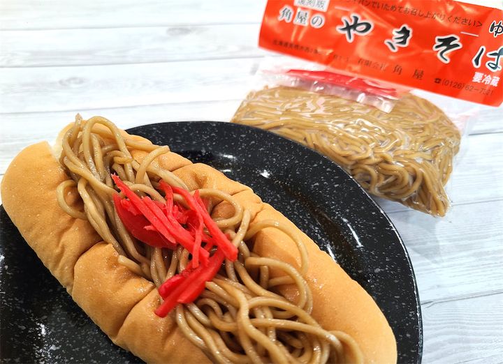 「焼きそばパンにする」という口コミも見つけたので、筆者もマネしてみました♡背割りコッペパンにフライパンで少し炒めた「角屋のやきそば」を挟んでみましたよ。