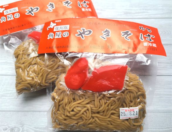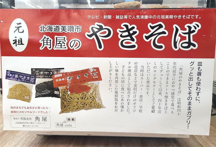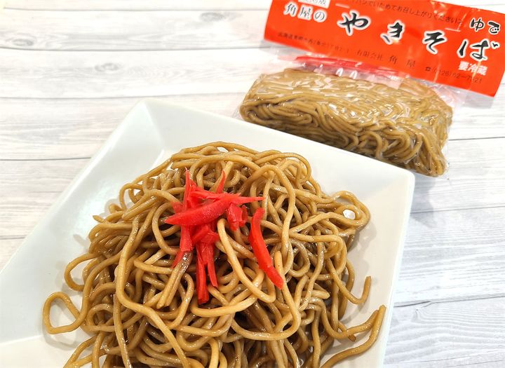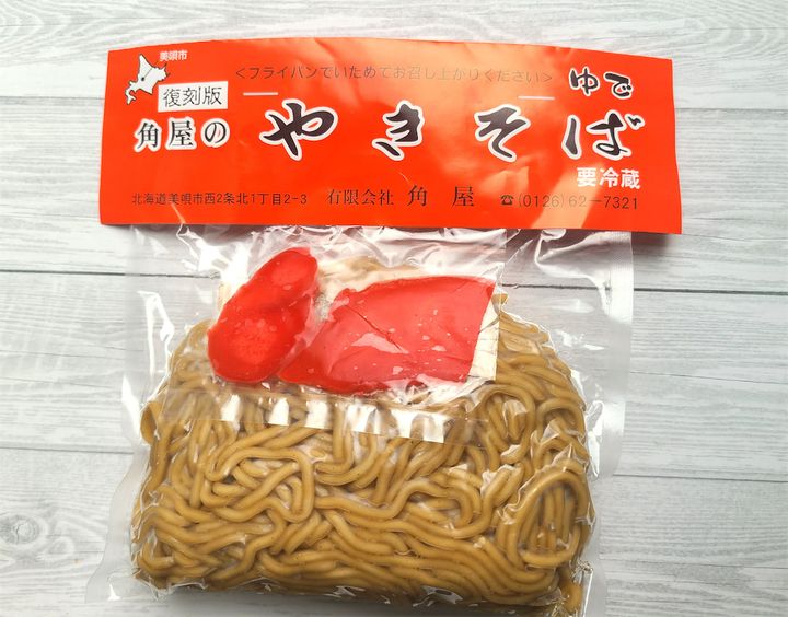 角屋は、昭和31年に北海道美唄市で製麺業として創業を始め、現在は食堂経営や食品卸販売、仕出し弁当、ケータリングサービスなどを展開している会社です。創業当時、美唄市は炭鉱が盛んで、人口も現在の5倍以上あったそうです。人口の減少とともに、「角屋のやきそば」の生産は終了してしまったのですが、2005年から「復刻版」として販売が再開されました!美唄市は札幌から車で1時間ほどの距離にありますが、筆者は札幌では見かけたことがありません。