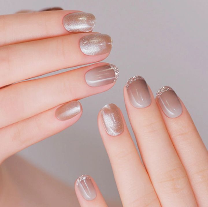 シーンを選ばないブラウンにシャンパンのラメが大人っぽ可愛い♡