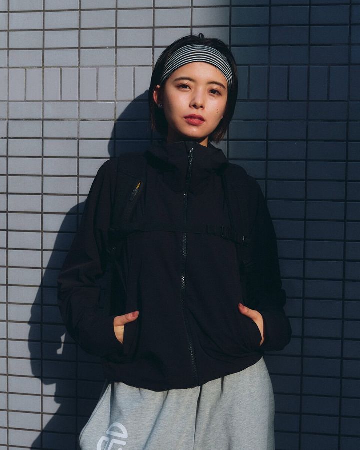 【スナップ】コンパクトなナイロンジャケットにバギーなスウェットパンツを合わせた絶妙なバランス感
