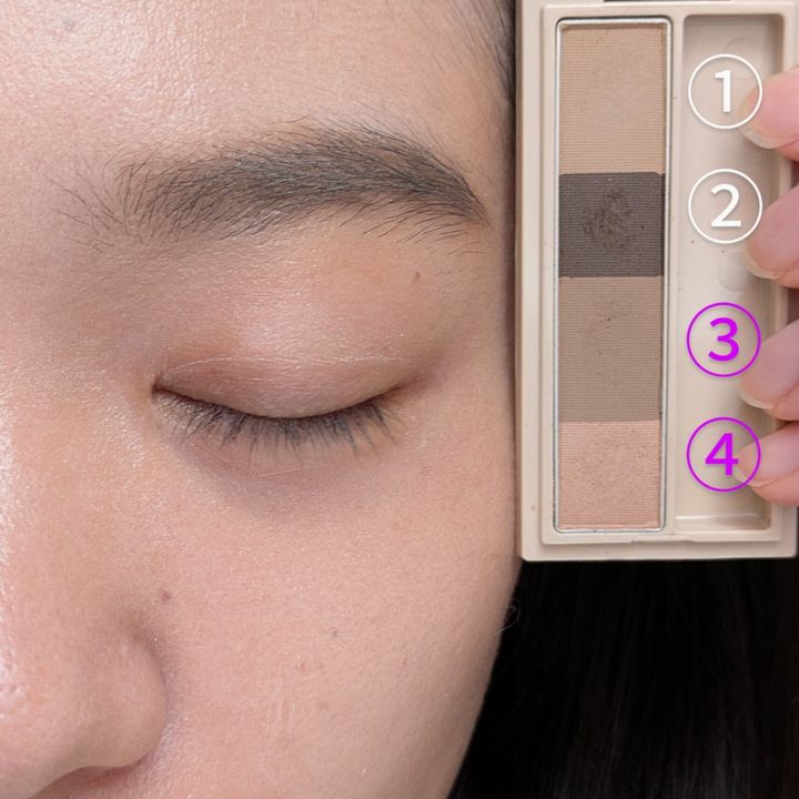 出典:MORE③眉中から眉頭にかけてふんわりのせる④全体にふんわりのせる