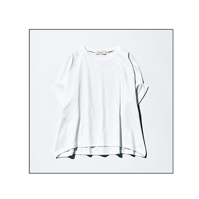 白スクエアフォルムTシャツ/ビーミング by ビームス 通常のクルーネックよりも、首まわりに余裕を持たせることで顔まわりもすっきり。そでも長すぎず、落ち感のある素材と相まって、着るとノースリーブを長くしたような仕上がり。