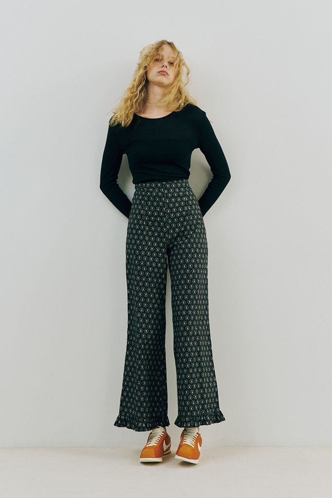 花柄とフレアシルエットがレトロなパンツは
