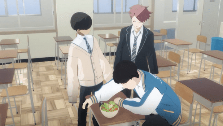 昼休みも、サラダとおにぎりを前に悩む祐樹。そこへ、山田と鈴木が声をかける。