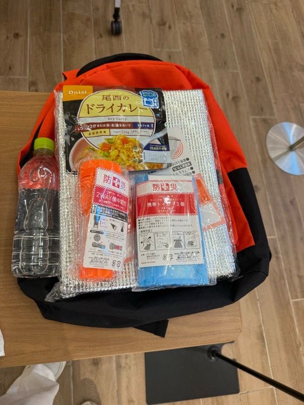 ”台風情報が発令され、一日だけ避難所に行くことになりました。防災グッズは何が必要でしょう?”
