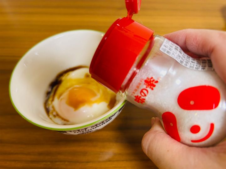 さらに、うま味調味料も振ります。しょうゆだけでなくうま味調味料も加えることで、卵のコクがより引き立ち、しょうゆの角が取れてまろやかに仕上がるそうです。
