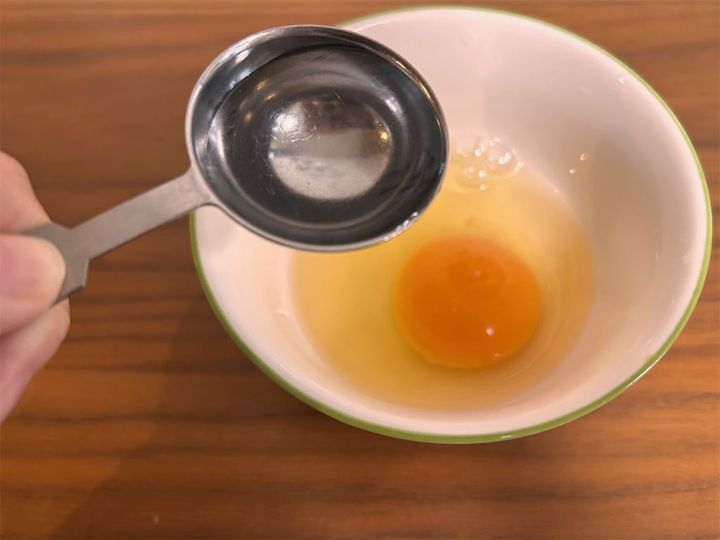 常温の卵だと加熱しすぎてしまうため、冷えた卵を使うのがポイントです。
