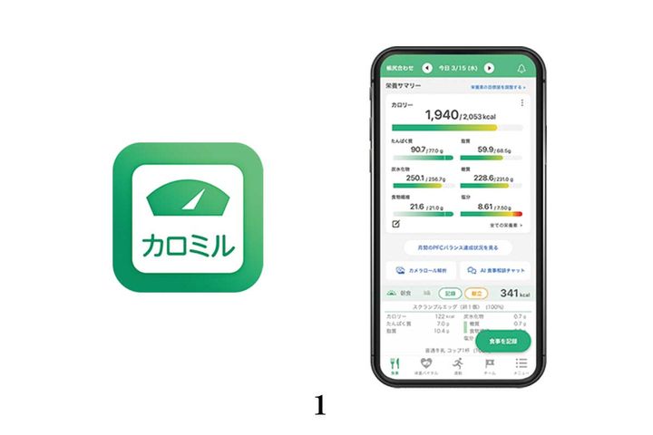 1.「健康管理アプリ『カロミル』で毎日の食事を記録。何年も続けていたら、自分に必要な栄養素がわかるようになってきました!」