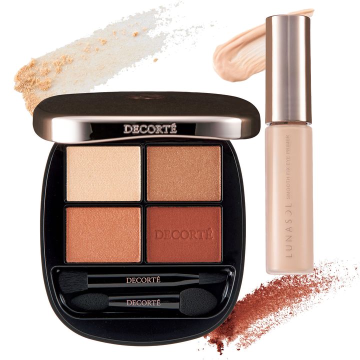 まぶたをナチュラルにトーンアップしシャドウのヨレを防ぐアイベース。驚くほどシャドウの発色をアップさせ、つけたての色をキープ。ルナソル スムースフィックスアイプライマー ¥3,850(カネボウ化粧品)