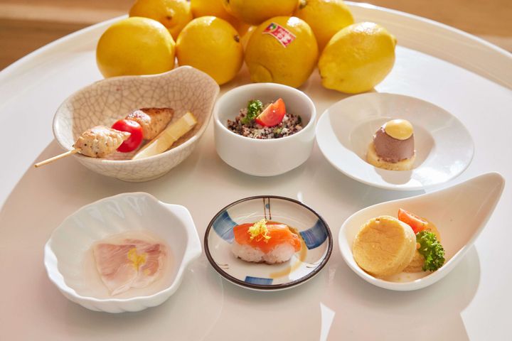 その新鮮な味わいに驚いたのが「サーモンの握り~チリ産レモン ゼスト添え~」(前列中央)。新鮮なサーモンを繊細にカットし、チリ産レモンのゼストで香りづけしたシャリの上にのせた握り寿司なんですが、ひと口ごとに爽やかな柑橘の風味が口いっぱいに!
