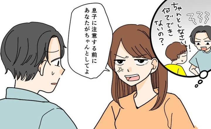 ねぇ、なんでそんなに息子を叱れるの? あなたは人に言えるほど、何でも完璧? 子どものときから全部完璧にできていたわけ? 私、結婚してからあなたに何回も同じことをお願いしてるんだけど、なかなか治ってないよね? もちろん、息子にも悪い部分はある。でも、息子にちゃんとしなさいって注意する前に、まずあなたがちゃんとしてよ」とぶちまけたのです。
