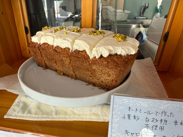 フロランタンは、オートミールとナッツにほんのり塩気が効いたサクサク食感。太白ごま油が入っているそうです。キャロットケーキとは一味違った美味しさが楽しめました。