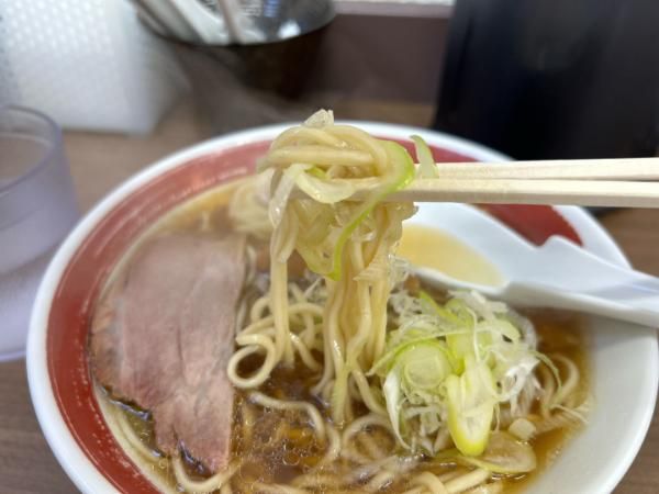 麺はストレート麺。パッツンと嚙み切れるタイプの麺です。