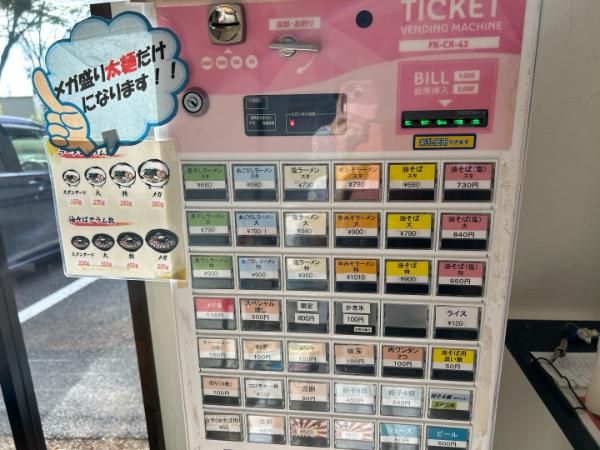 まずは食券を購入。下の方に朝ラーのボタンを発見。私は、ワンタン2つ100円で追加して620円。