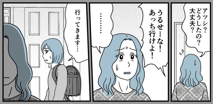 母は優しい声で兄の部屋の前でお伺いをたてます。けれど兄は反抗的な言葉を返してくるだけ。私はそんなやり取りを横目で見ながら小学校へ出かけていきます。けれど母が私の方を振り向いてくれることなどありませんでした。