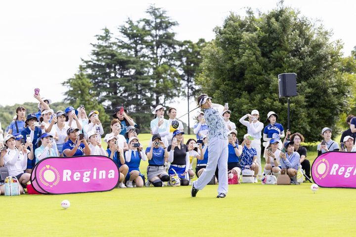 216名の女性ゴルファーが参加し、今年も盛況に終わった「Regina Open 2025」(7月18日、千葉県・南総カントリークラブ)。今回、契約するゴルフウェアブランド「ヒールクリーク」イベントホールにゲストとして登場し、開会式ではドライバーの模範ショットを披露していただいた北田瑠衣プロに、大会の感想を聞いてみました。