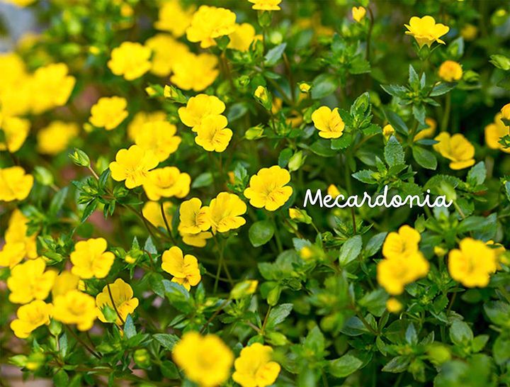 メカルドニアの名前は、スペインの植物園設立に寄与したアントニオ・メカイ・カルドナ(Antonio Mecay Cardona)から名付けられました。また、メカルドニアの代表品種の1つである‘ゴールドダスト’は、小さい黄色い花を砂金に見立てて名付けられました。
