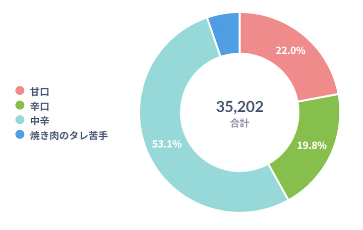 1位は「中辛」!甘さと辛さのバランスがちょうどよく、ごはんにもお肉にもぴったりの万能な味ですね。2位には、子どもに人気がある「甘口」。食べやすさが人気です。3位には、ちょっぴり大人味の「辛口」がランクイン。辛党さんに人気です。4位は少数派ながら「焼き肉のタレが苦手」という意見もありました。肉の種類や食材で、味を使い分けるのもよいですね。