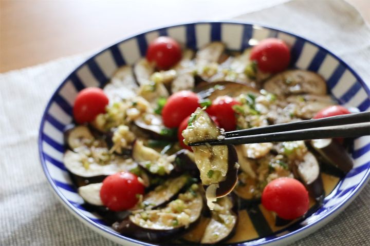 ナムルとは野菜や山菜を茹でて、ゴマ油や塩、にんにくなどで和えた韓国料理のこと。焼肉屋さんでもよく見かけますよね!ナムルは、もやしやほうれん草が定番ですが、なんと今回はなす!?を使っちゃうんだとか。しかも薬味たっぷり&お酢のチカラでサッパリと味わえるそう。レンチンのみで出来るとのことなので、さっそく作ってみましょう!