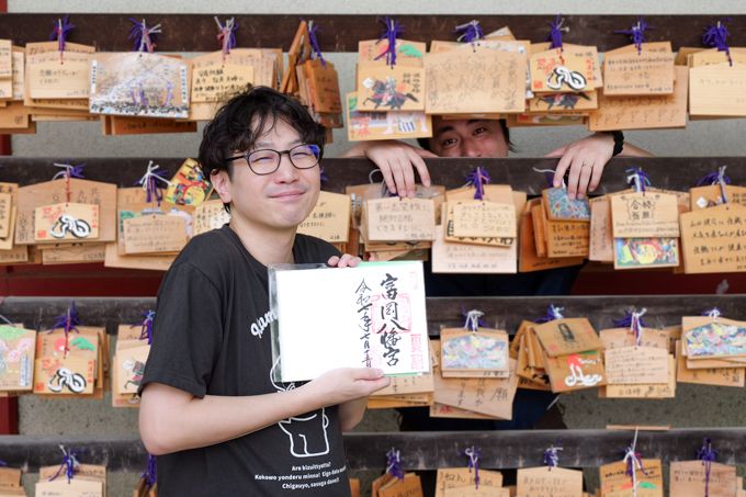 ※御朱印を受け取った小林氏と影から見守る寺内氏。