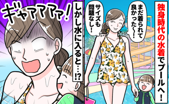 3. 「サイズぴったり!まだまだイケる!」独身時代の水着で3歳息子とプールへ。水に入った瞬間に悲劇が!?