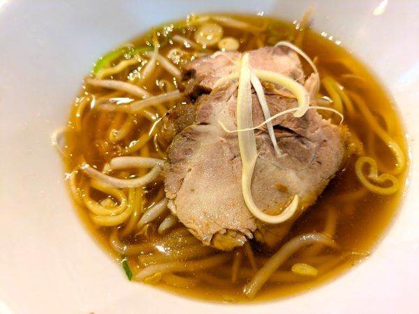 チャーシューが厚めで、おかずになるチャーシューでした。麺はちゅるちゅると食べやすく、醤油ベースのスープはキラキラと光っていました。コラーゲンですね~。