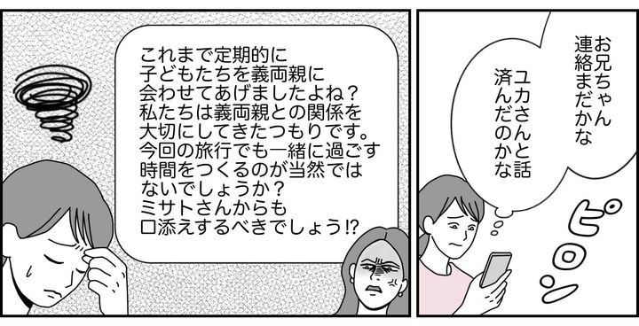 私(ミサト)は月に一回、長男(小学生)と次男(幼稚園児)を連れて近所の実家へ行っています。隣県に住む私の兄は3・4ヶ月一度、甥たち(年長と3歳)を連れて実家を訪問しています。義姉(ユカ)は私や両親とは疎遠です。私は兄が実家に連れてくる甥の世話を任されて複雑な気持ちになっていましたが、両親と兄が日頃のお礼にと、私をグアム旅行に招待してくれました。しかし私は義姉から「旅行に誘われなかった、不公平だ」と怒りの連絡がきたのです。