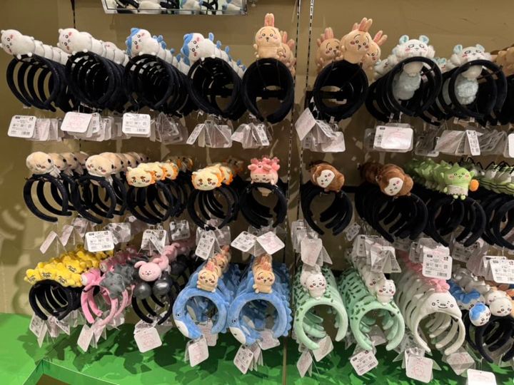 テーマパークといえばカチューシャ! 展示エリアに入ってすぐの場所にカチューシャ売り場がございます。まずはぜひここでカチューシャをゲットしていただきたいと思います。パーク内全体がフォトスポットのようなものなので、買って損はしないはず。珍しいキャラクターのものもあり、ファンにはたまりません!