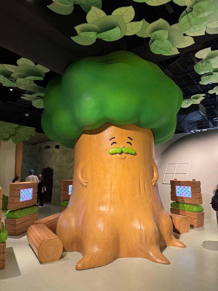 まずはB1Fの体験展示エリアへ。エントランスの壁面には、ちいかわたちの物語が!