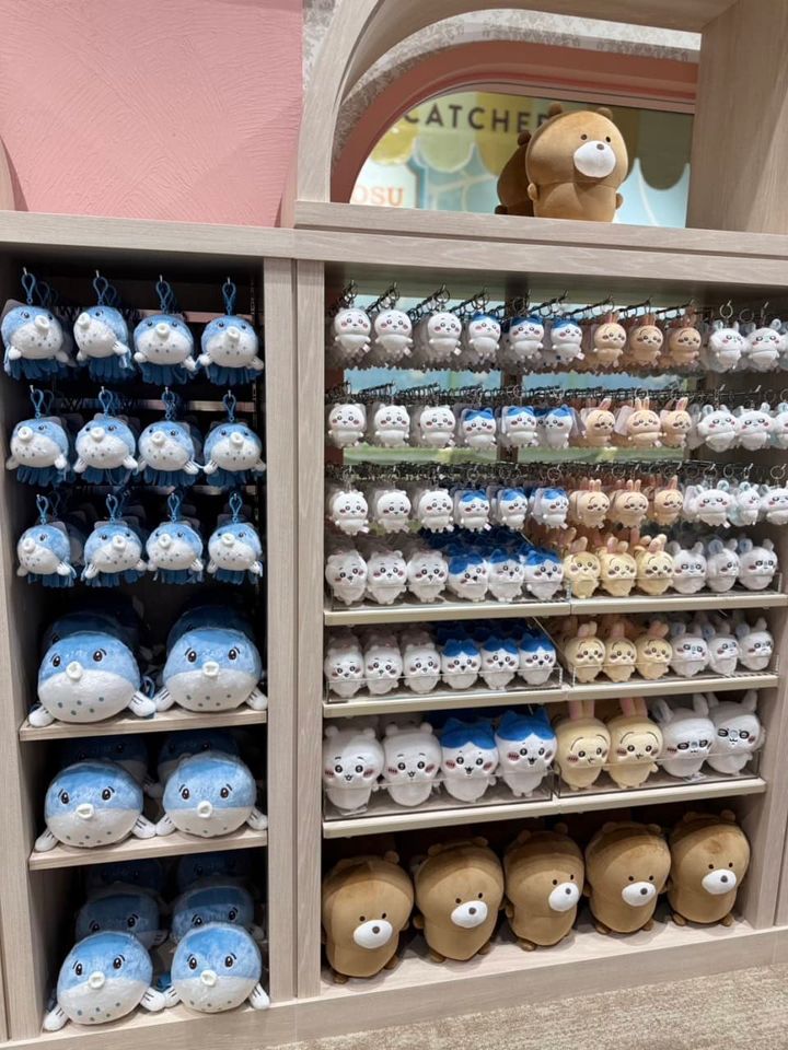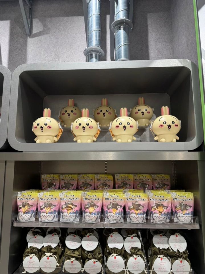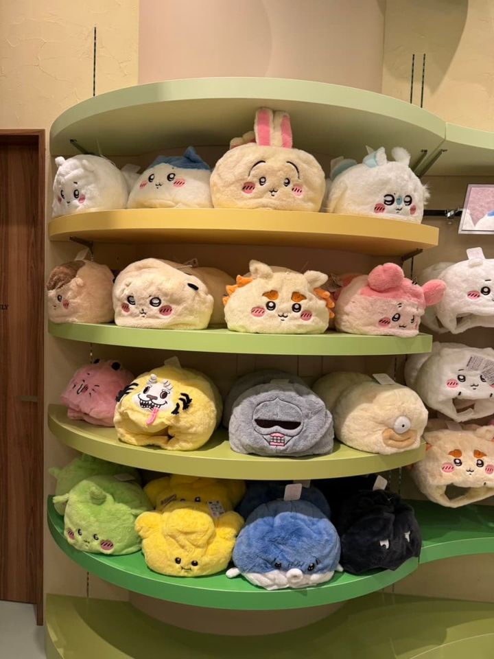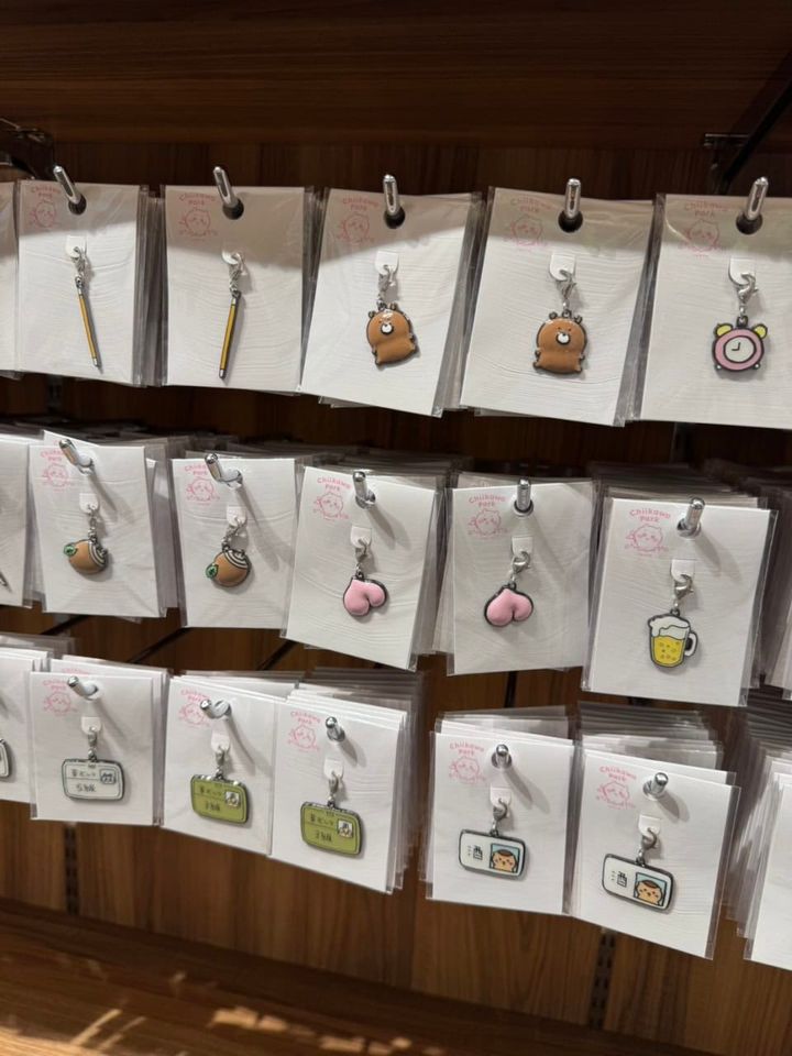 展示エリアを存分に楽しんだ後は、1Fのショップエリアへいざ。はい、やばいです。欲しいものだらけなので、みなさん覚悟して行きましょう。ちいかわパーク限定アイテムをはじめ、カスタムできるチャームなど、ここでしか手に入らないグッズが多数! 気になったものをご紹介しますね。