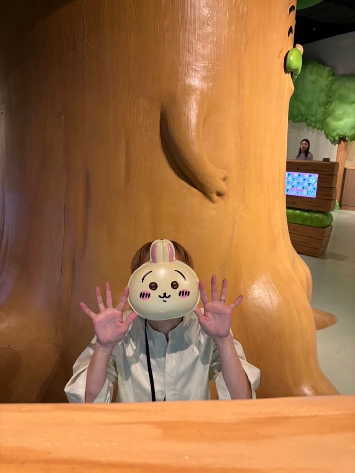パークを存分に楽しむべく(※仕事です)、息子のために縁日で買ったうさぎのお面を、自主的に持参しました。