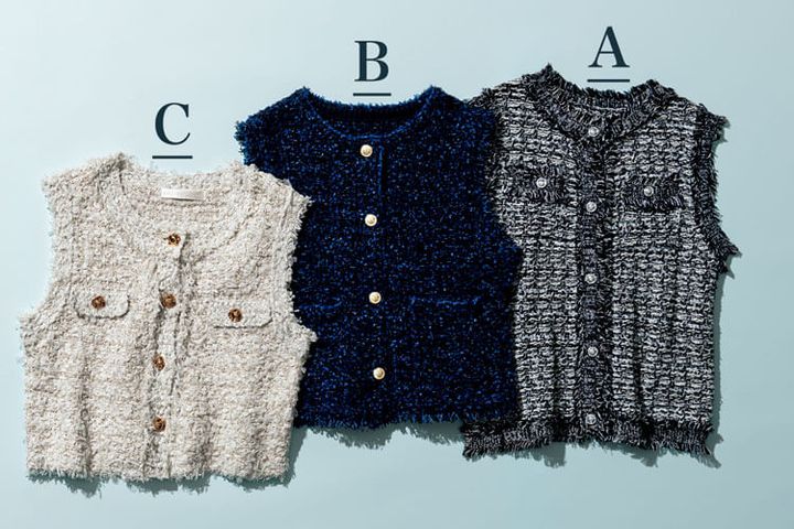 3. 「ツイード風素材のジレ」が買い!夏コーデに品をプラスして秋まで使える着回し力!