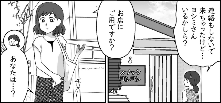 ヨシミさんに対してふつふつと怒りがわいてきました。結婚をあきらめるどころか、タカアキに泣きついて親との縁を切ろうとさせるなんて……! もうなりふり構っていられません。私はヨシミさんと話をつけようと、彼女が経営しているスナックに向かったのでした。