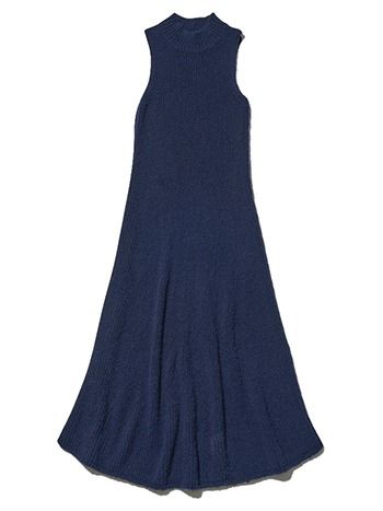 ネイビーキャミソールつきニットワンピース/バナナ・リパブリック 高い位置から広がりを持たせることで、脚を長く見せる効果ものぞめるデザイン。上質なメリノウールとナイロンをブレンドした毛糸を使用し、肌ざわりのよさを実現。