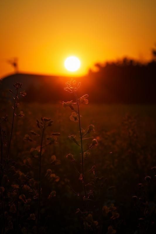 太陽が上がってきた一瞬の時間帯は、黄色の世界がとても濃くなり、そして陽の光に照らされる花は鮮やかになり、時間も忘れるほど美しい景色です。