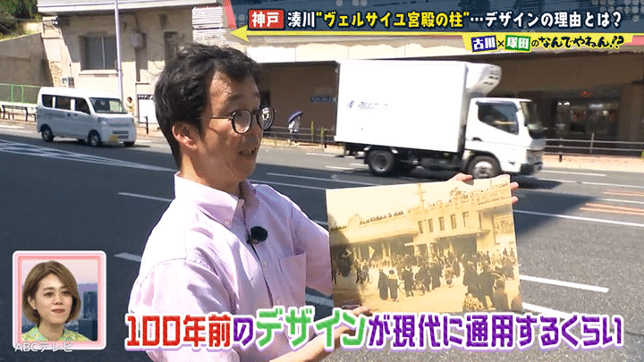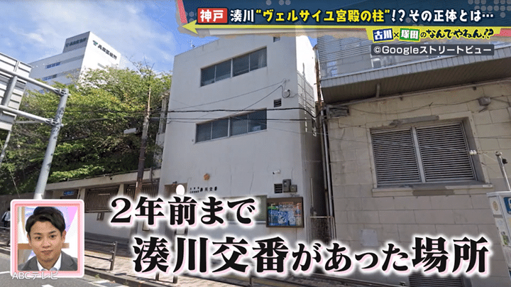 神戸電鉄湊川駅(兵庫県神戸市兵庫区)のそばには、ヨーロピアンなデザインの建造物がポツンと佇んでいる。それはまるで、フランスにあるヴェルサイユ宮殿の柱のよう。実はこの建造物には、100年前の神戸の秘密が隠されていた! ABCテレビの古川昌希アナウンサーと調査を始めたA.B.C-Zの塚田僚一は、奇想天外な予想をさく裂させ……!?