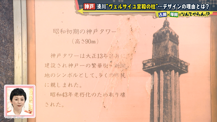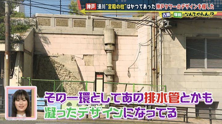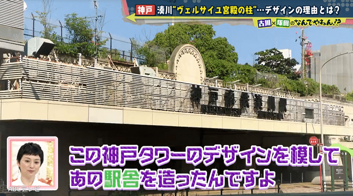 ちなみに、駅舎と湊川の“ヴェルサイユ宮殿の柱”が石造りのヨーロピアン風な理由は、湊川公園の時計台にあった! そこには、「神戸タワーは大正13年3月に建設され、神戸一の繁華街・新開地のシンボルとして、多くの市民に親しまれた」という記載が。伊原さんいわく、「この神戸タワーのデザインを模して、あの駅舎を造った」「その一環としてあの排水管とかも凝ったデザインになっている」そうだ。