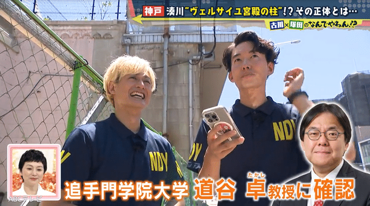 そのため古川アナは、「コレよ絶対! 時代もドンピシャ、100年前でしょ!? 劇場があったんじゃない?」と確信。塚田も、「24のうちの1つの!」と同意し、“湊川のヴェルサイユ宮殿の柱”=100年前にあった劇場の排水管と、2人は考えをまとめた。