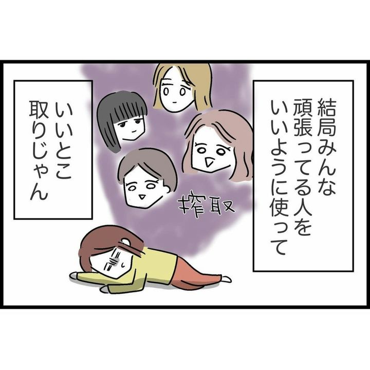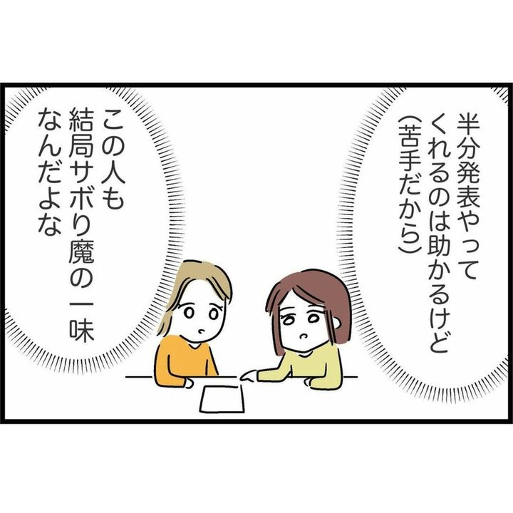 自分たちが一緒にやるべき課題に取り組まず、誰か1人が負担を背負っていたことに全く悪びれていないことが本当に怖いですね。こうした人とは学校や職場で同じ作業を進めるのが怖いと思えます。自分たちは「いいとこ取り」をしていることに何も感じていないのでしょうか。それが不思議ですね。
