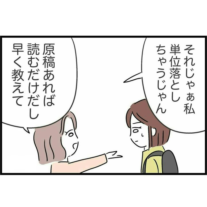 案の定、サボり魔のメンバーは初日以外、講義に顔を出すことはなく、桜子は大きなストレスを感じながらも1人で深夜まで発表物の制作に励みます。そしてついにグループ課題の発表の日、ここまでずっと講義をサボっていたメンバーたちは何と講義に参加していて…?
