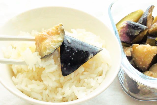 ご飯に乗せて食べてみると、なすにみそ味がしっかり染みています♪辛子を少し加えているので風味がよく、みそだけで漬けるよりも上品さが増している感じ。