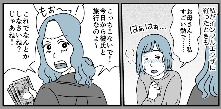 私(ナツキ)は、夫のタケルと中学3年生の息子コウセイとの3人家族です。少し前、実家の母が入院したとの連絡がありました。しかもこの先、ひとり暮らしが難しい状況になってしまったとのこと。けれど私は一切、母の面倒を見るつもりはありません。母は私が小学生の頃に離婚し、私と兄を引き取りました。けれど母は父に似ていた私のことを毛嫌いし、きつくあたっていたのです。兄が不登校になってからはますます、私は母に疎ましがられ……。
