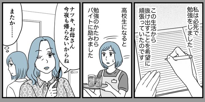 母は兄のサポートに疲弊したのか、恋人と過ごす時間が多くなっていきました。私は必死で勉強をしました。この生活から抜け出したいというその一心で私は頑張っていたのです。高校生になるとお金を貯めるためバイトもはじめました。